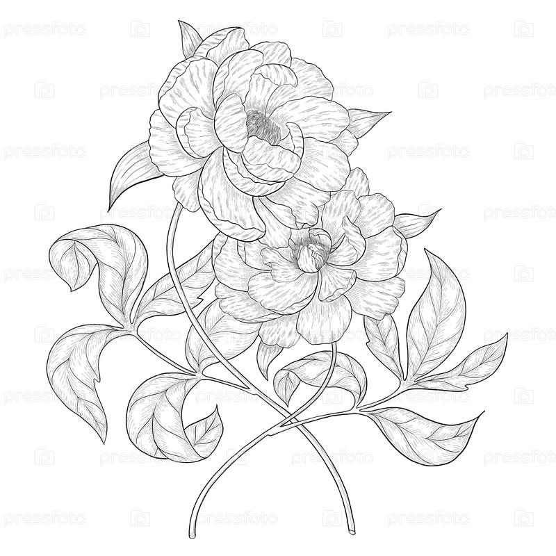 Черно-белые цветочные контуры ботанической иллюстрации
