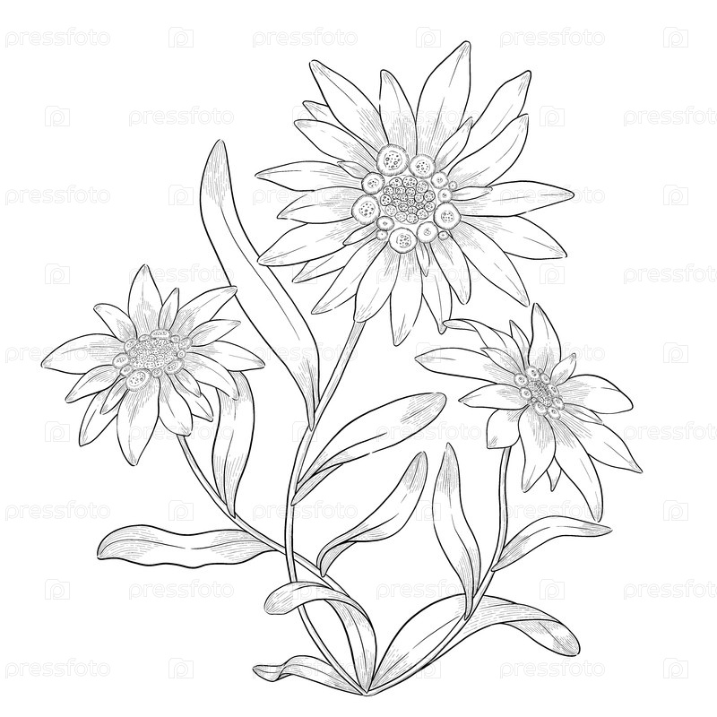Черно-белые цветочные контуры ботанической иллюстрации
