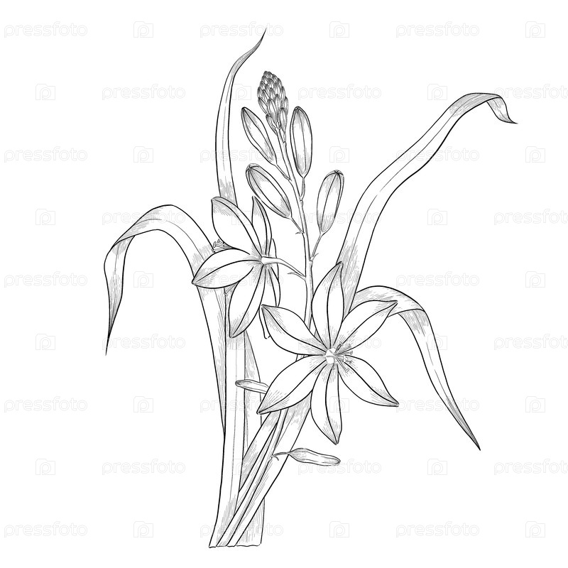Черно-белые цветочные контуры ботанической иллюстрации