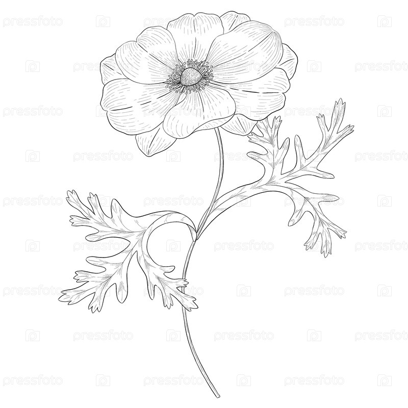 Черно-белые цветочные контуры ботанической иллюстрации