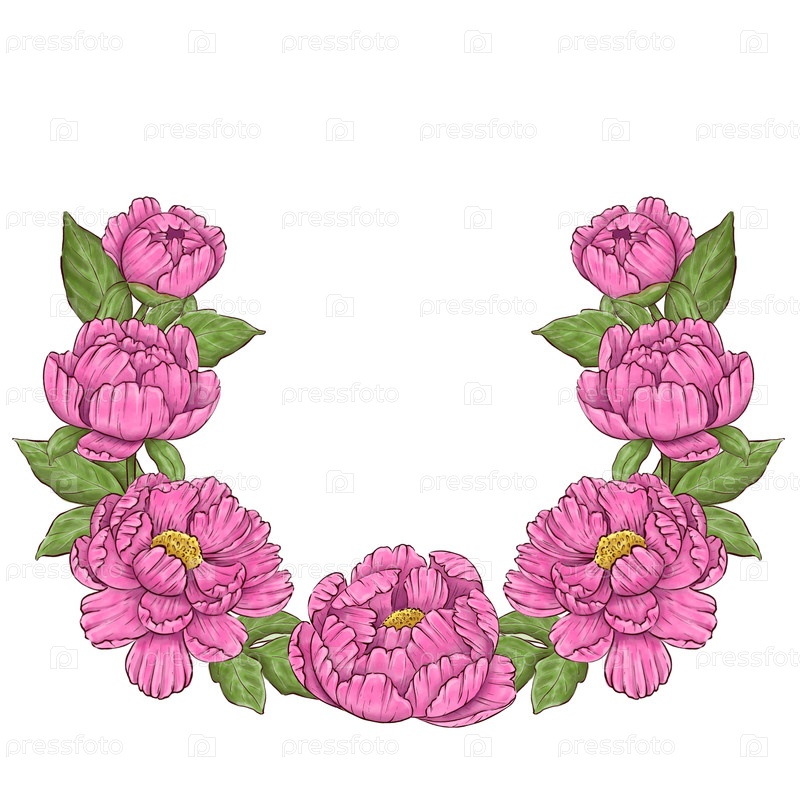 Розовые садовые цветы изолированы на белом фоне. розовый букет цветов, бургундская пионная рама, венок. летний дизайн. свадебное приглашение