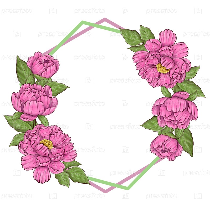 Розовые садовые цветы изолированы на белом фоне. розовый букет цветов, бургундская пионная рама, венок. летний дизайн. свадебное приглашение