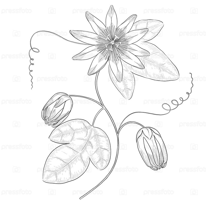 Черно-белые цветочные контуры ботанической иллюстрации