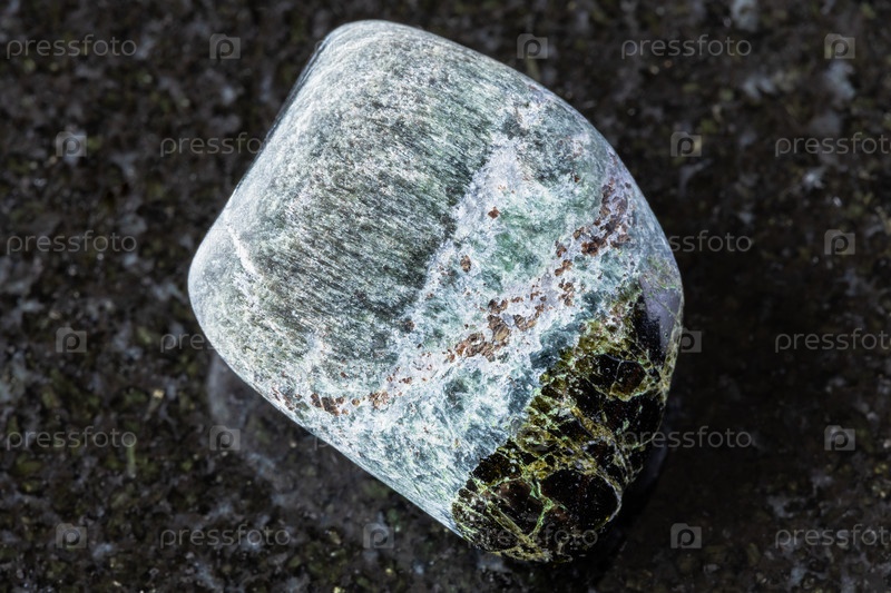 Полированный рихтерит и диопсидный минерал на черном