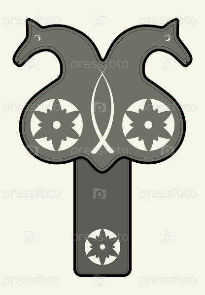 Векторный макет магнитного сувенира в традиционном деревянном народном стиле