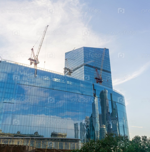 Современное офисное здание под строительством на голубом небе