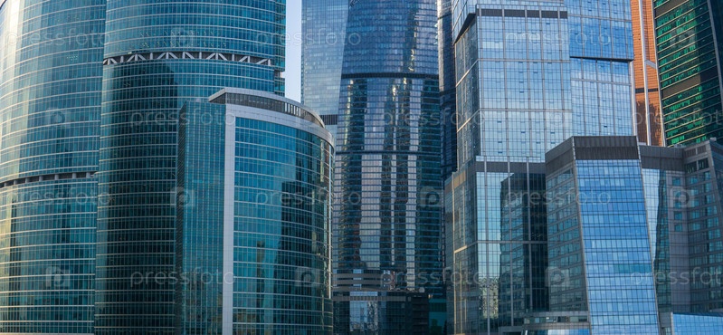 Городской фон, стеклянные стены небоскребов бизнес-центра