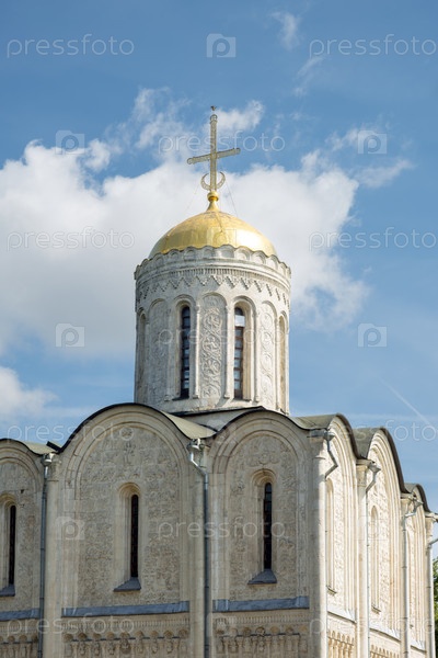 Владимир, Россия - 07.25.2025.Дмитриевский собор во Владимире с золотым куполом