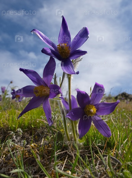 Россия. Юг Западной Сибири. Открытый выстрел (Спящая трава) - первые весенние цветы на каменистых склонах гор Алтая