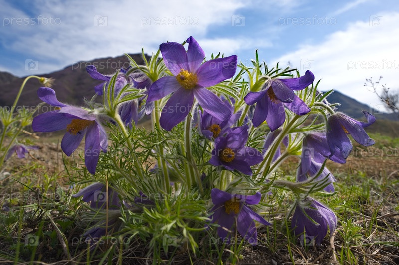 Россия. Юг Западной Сибири. Открытый выстрел (Спящая трава) - первые весенние цветы на каменистых склонах гор Алтая