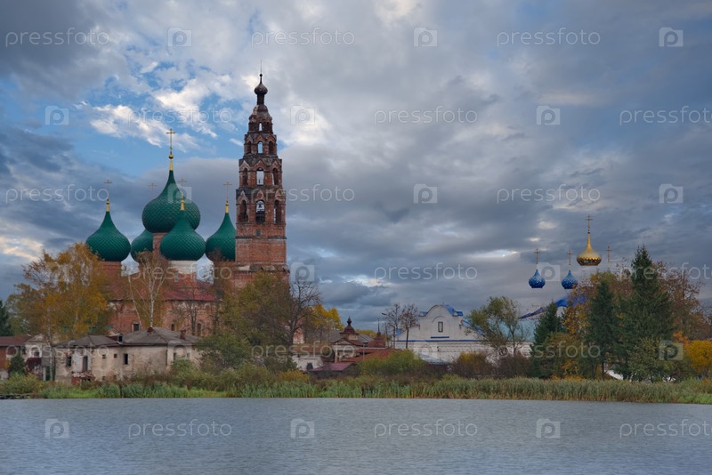 Большой Гаврилов.Россия.Октябрь 07, 2018.Вид на православные церкви Рождества и Заступничества Девы Марии архитектурного ансамбля Великосельского Кремля