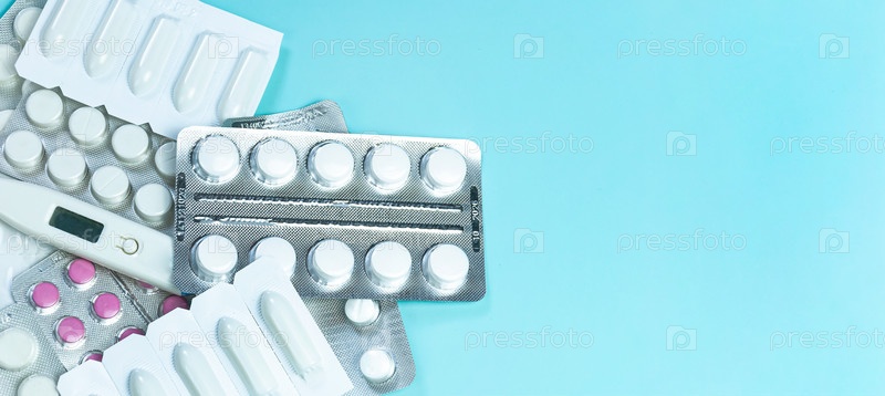 Понятие медицины и здравоохранения. Таблетки, медицинская маска и. Принимайте лекарства по указанию врача. Светло-синий фон. Коронавирус, вакцинация и медицина