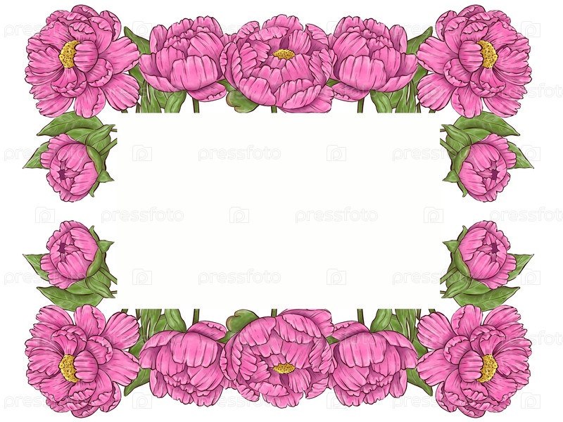 Розовые садовые цветы изолированы на белом фоне. розовый букет цветов, бургундская пионная рама, венок. летний дизайн. свадебное приглашение