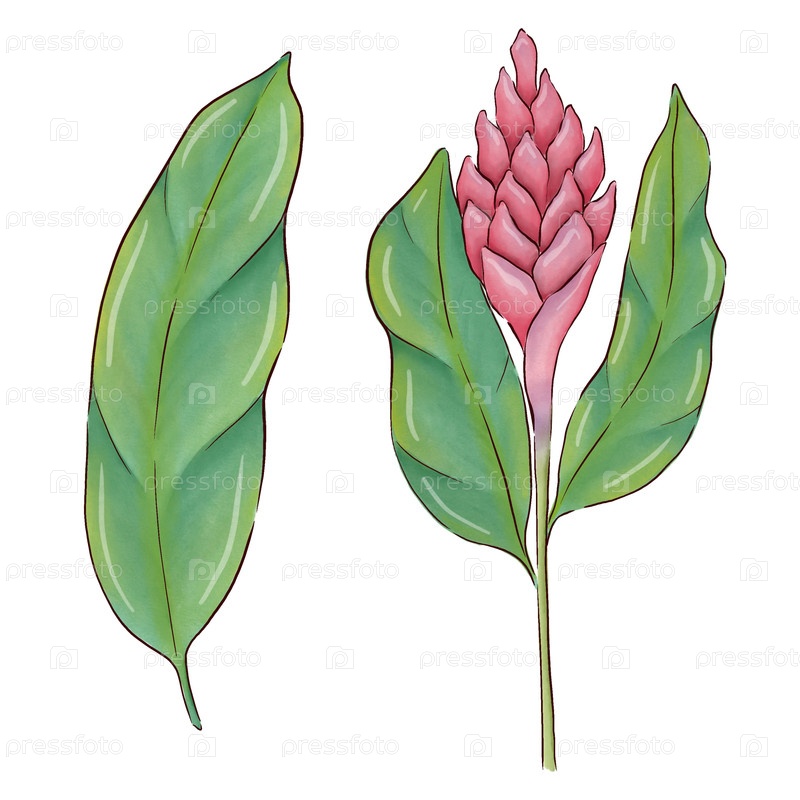 Украшение с имбирным чаем, корнями и цветами имбиря. цифровые иллюстрации