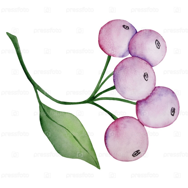 Акварельный набор из цветов, листьев и драгоценных камней