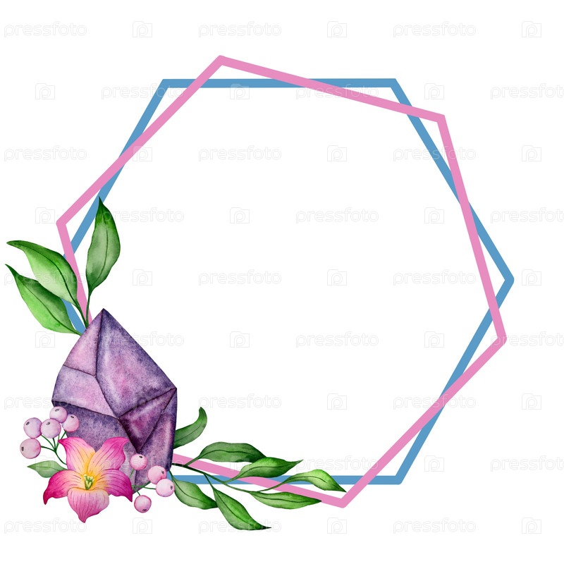 Акварельный набор из цветов, листьев и драгоценных камней