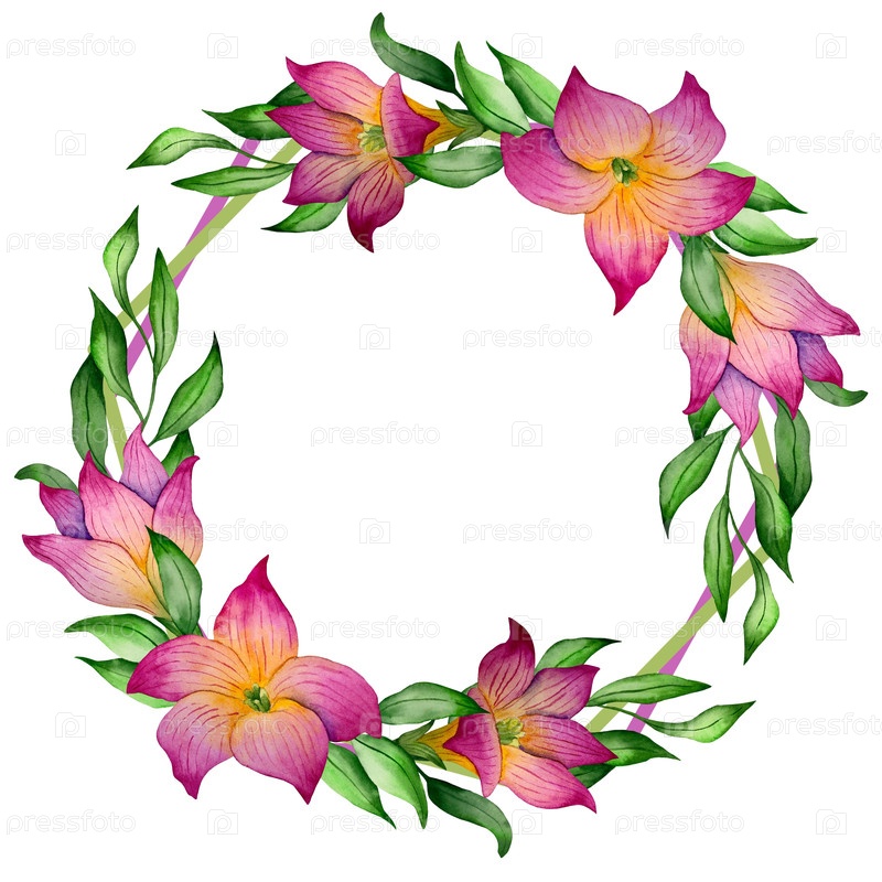 Акварельный набор из цветов, листьев и драгоценных камней