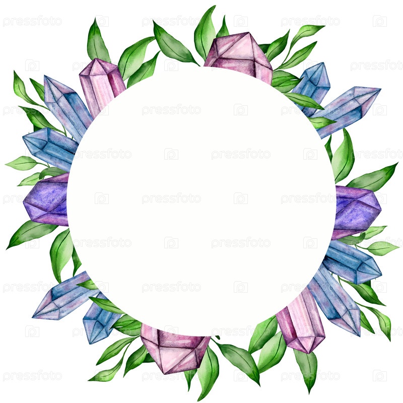 Акварельный набор из цветов, листьев и драгоценных камней
