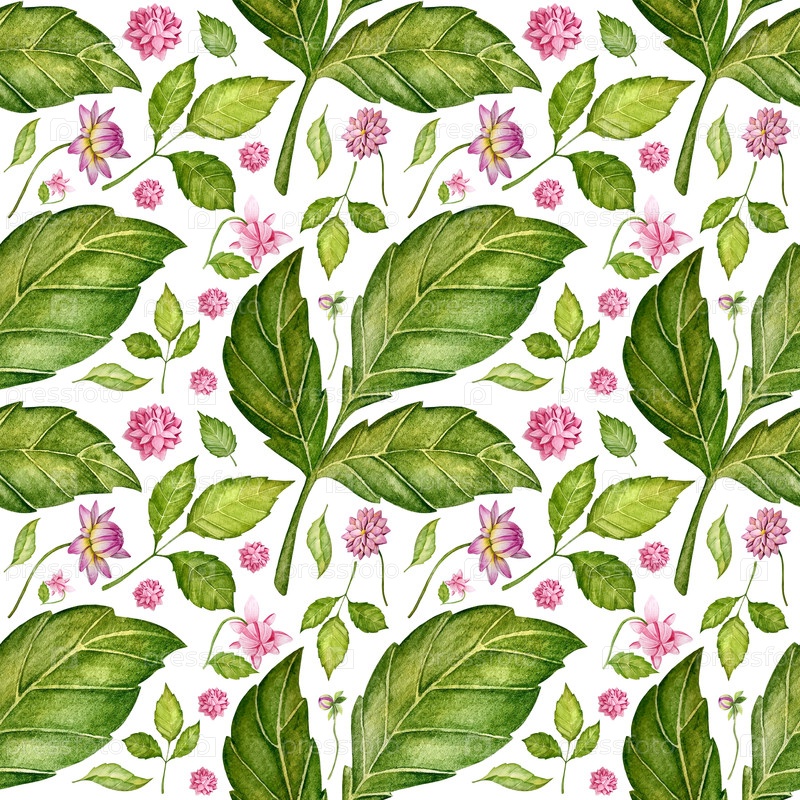 Акварельное украшение с цветами и листьями далии
