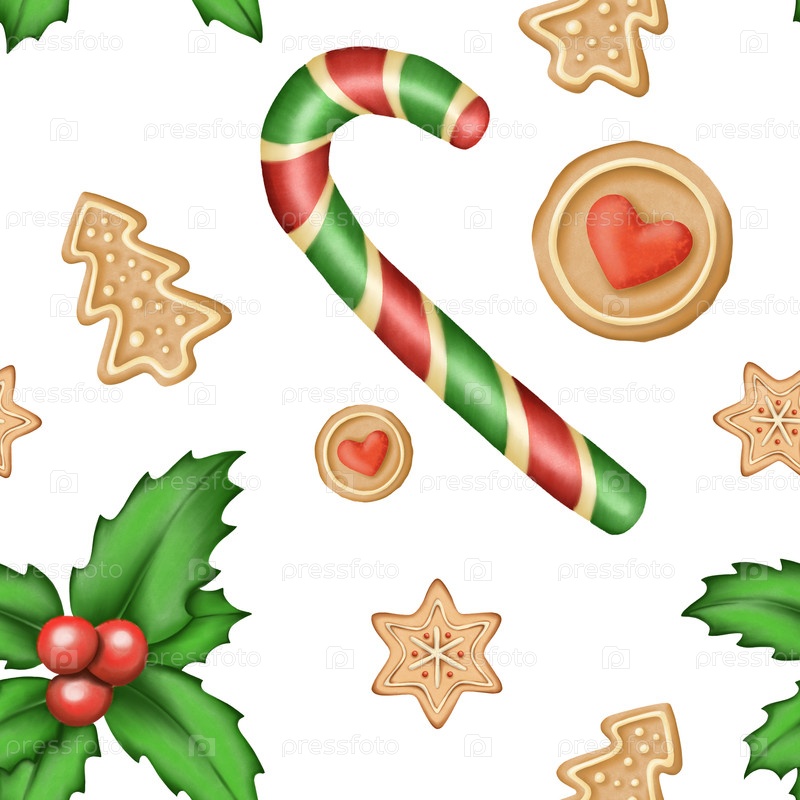 Элементы рождественских украшений, включая мандарины, рождественские печенье, холи, омела. цифровые элементы