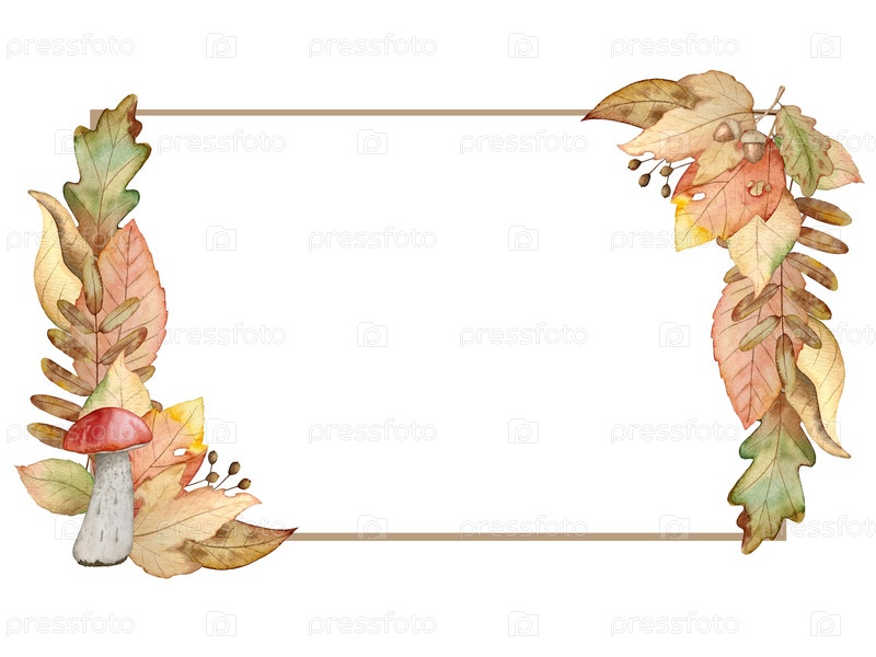Ручно нарисованный акварельный осенний набор желудей, осенних листьев, грибов, ягод, изолированных на белом фоне. Идеально подходит для создания карт и дизайна. Иллюстрации Дня благодарения
