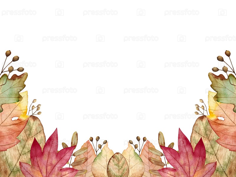 Ручно нарисованный акварельный осенний набор желудей, осенних листьев, грибов, ягод, изолированных на белом фоне. Идеально подходит для создания карт и дизайна. Иллюстрации Дня благодарения