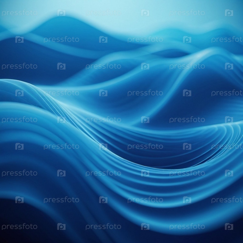 Плавучие 3D-синие волны создают абстрактное представление динамики жидкостей, вызывая спокойствие и глубину в минималистическом дизайне, который улучшает цифровое творчество