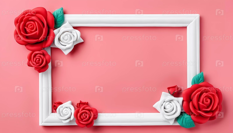Декоративная рама, украшенная красными и белыми розами на розовом фоне, обеспечивает очаровательный фон для искусства или сообщений. Идеально подходит для празднований и специальных случаев
