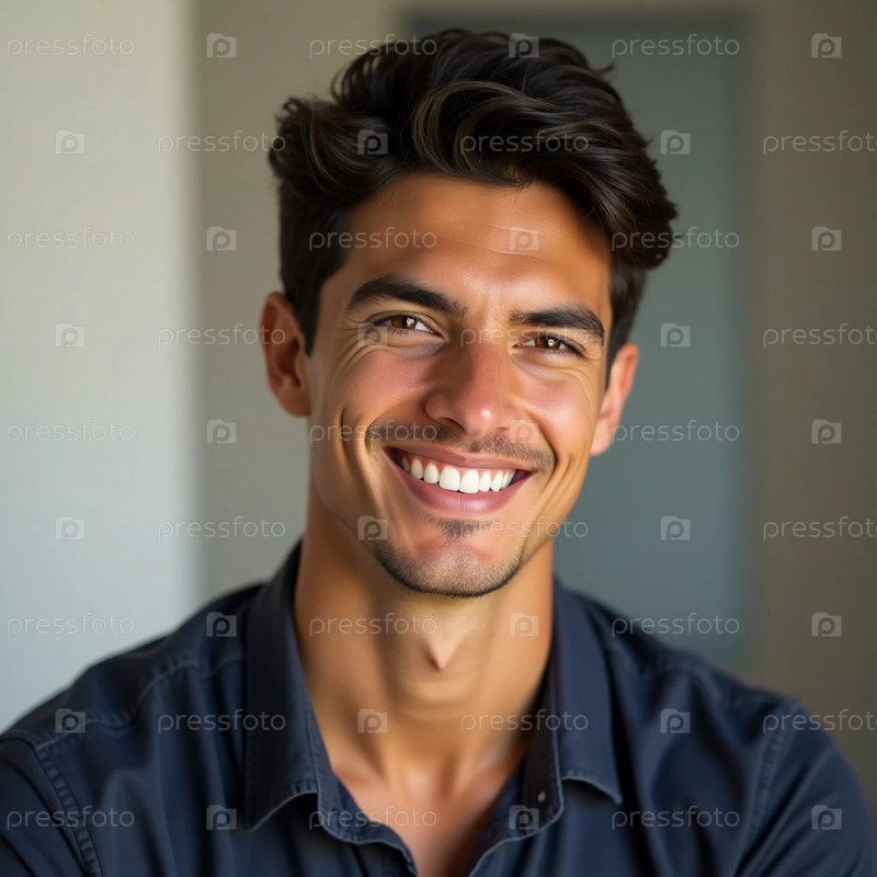 Молодой бразилец излучает очарование своей сияющей улыбкой на мягком, приглашающем фоне