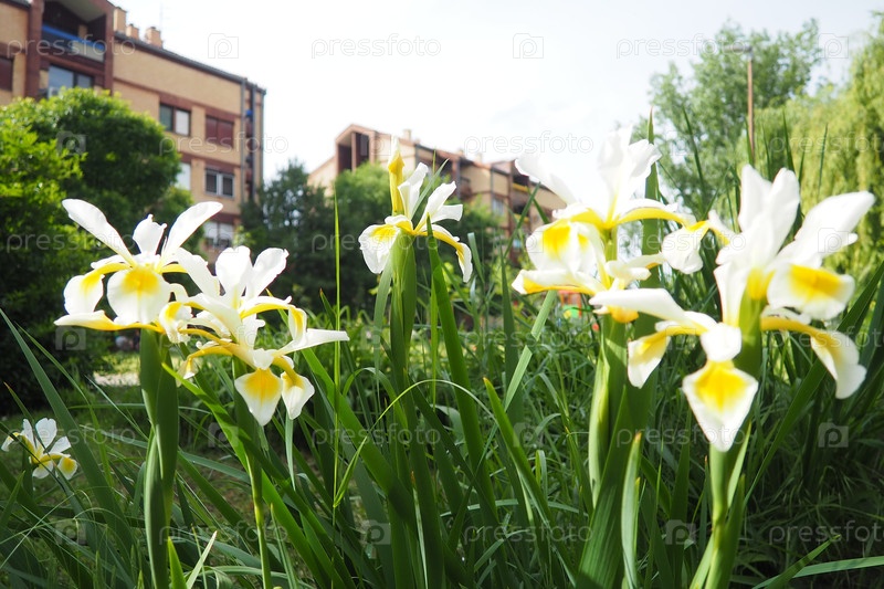 Iris orientalis - вид из рода Iris, подродка Limniris и серии Spuriae.Это корневище многолетних растений.Прекрасный белый радужник с хрупкими лепестками.Желтый цвет внутри цветка