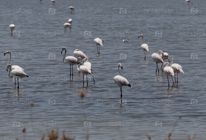 Большой фламинго (Phoenicopterus roseus) в соленых озерах Миссолонги (префектура Этолия-Акарнания, Греция)