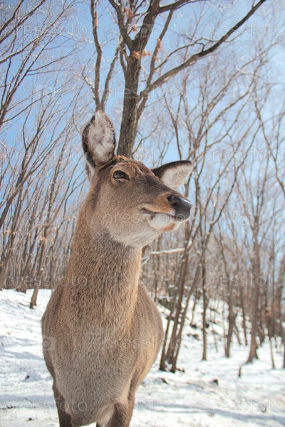 Олень смотрит в камеру и улыбается