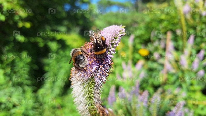 Шмели собирают нектар на цветке