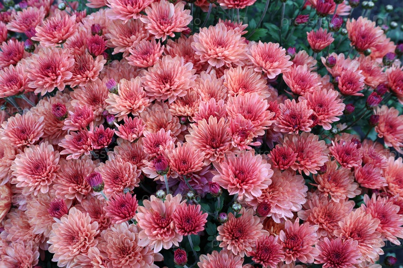 Осеннее цветение розовой хризантемы (мультифлоры) в саду