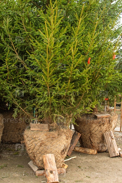 Саженцы хвойных деревьев в горшках в питомнике готовы к посадке