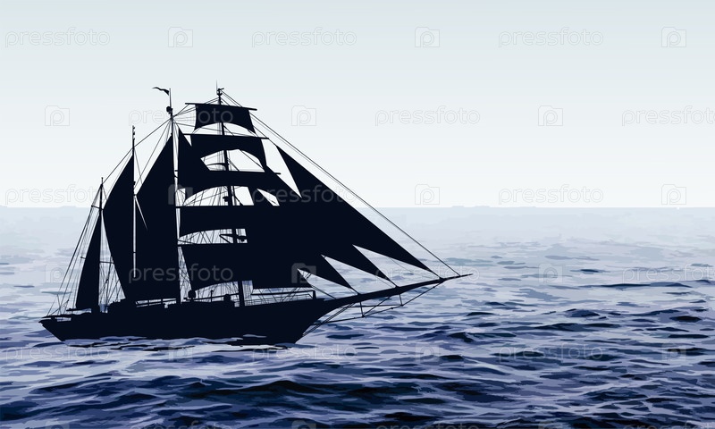 Морской пейзаж с парусным судном