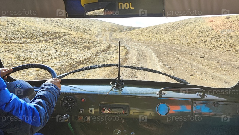Вид из кабины автомобиля во время путешествия по Алтайским горам на Марс 3