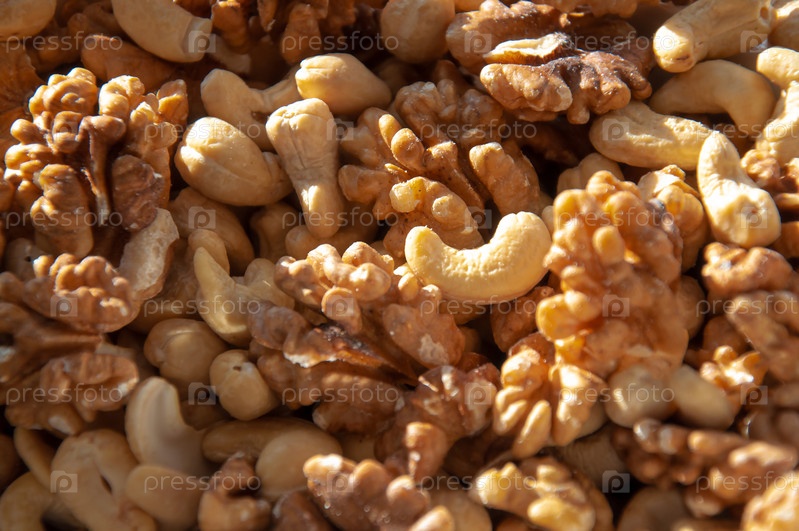 Гретцки и кешью. Различные орехи. Фон сделан из орехов. Правильное питание