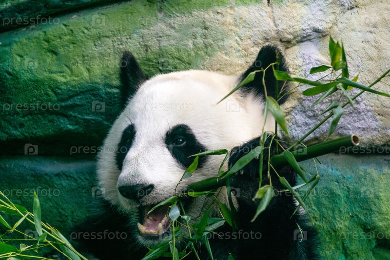 Гигантская панда ест бамбуковые листья