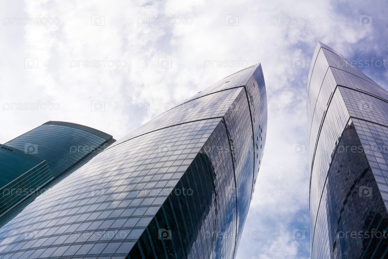 Современные небоскребы на фоне синего неба