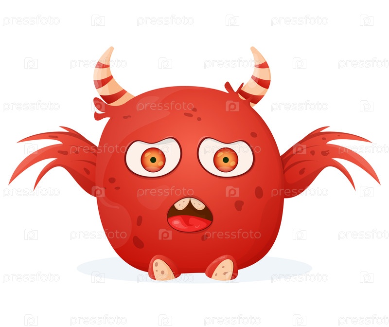 Милый маленький монстр с крыльями эмоциональное чудовище с красными рогами детская иллюстрация персонаж на белом фоне