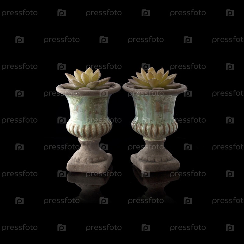 Декоративные вазы для садового украшения изолированы на черном фоне с сочными