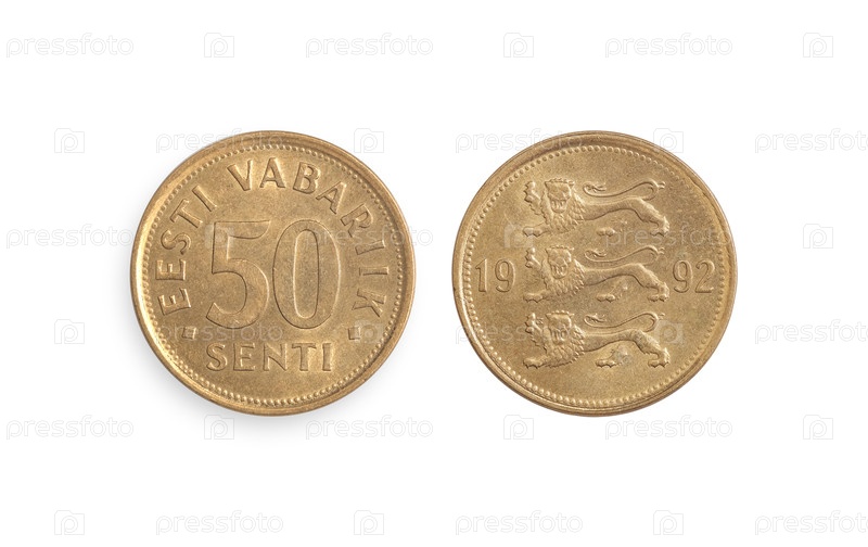 Старая эстонская монета 50 сади (обратно и наоборот). надпись Республика Эстония на английском языке. элемент дизайна с обрезанной дорожкой