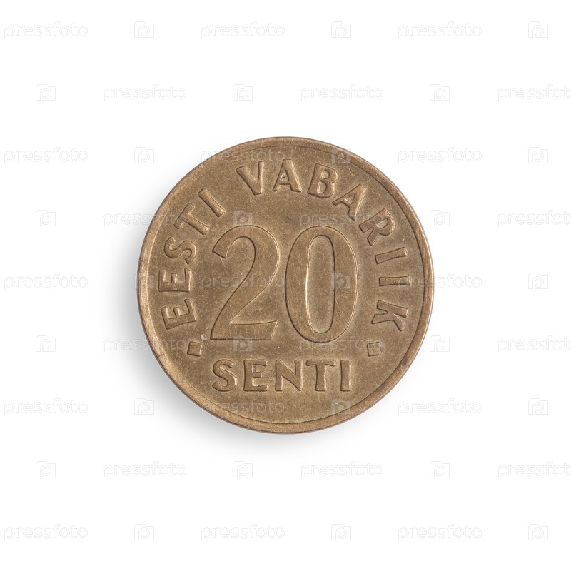 Старая эстонская монета 20 Сади. Надпись Republic of Estonia на английском языке. Элемент дизайна с обрезанной дорожкой