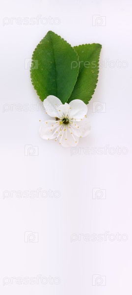 Цветы и листья вишневого дерева изолированы на белом фоне
