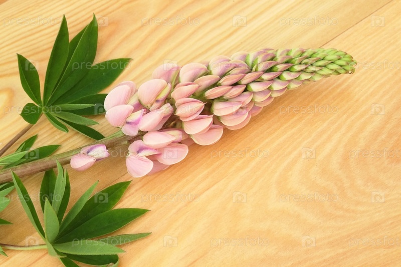 Лупинские цветы изолированы на деревянном столе