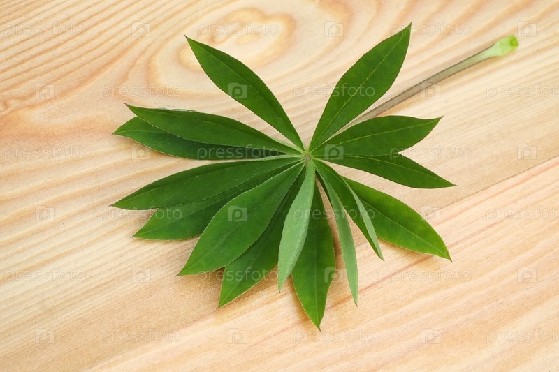 Зеленые листья люпина изолированы на деревянном столе