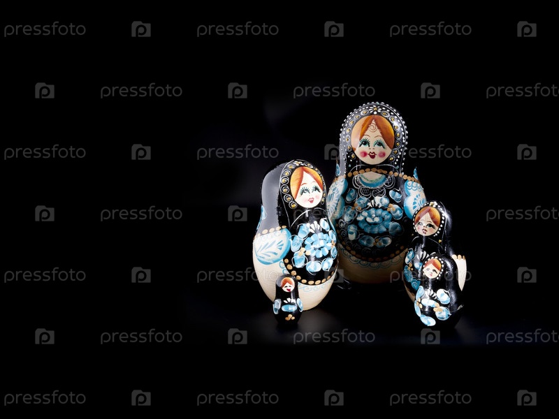 Российский национальный сувенир (Матриошка) изолированный на черном фоне