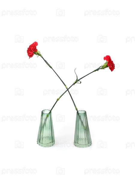 Один цветок красной гвоздики в стеклянной вазе изолирован на белом фоне