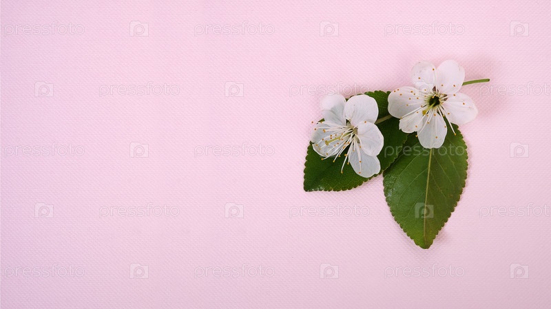 Цветы и листья вишневого дерева изолированы на розовом фоне